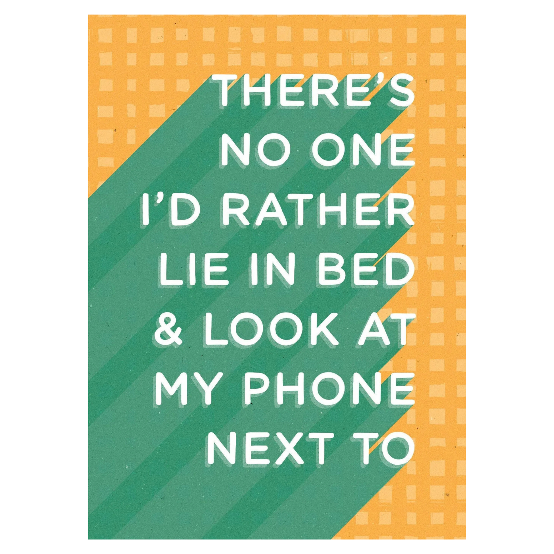 Front: "There's no one I'd rather lie in bed & look at my phone next to."