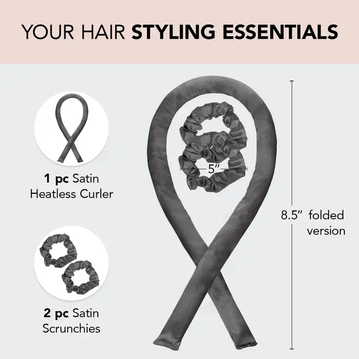 Kitsch Satin Heatless Curling Set allows you to create the perfect waves or curls for a beautiful style - without the heat damage! The satin construction keeps your hair frizz-free and prevents breakage. Simple to use and can be worn day or night!