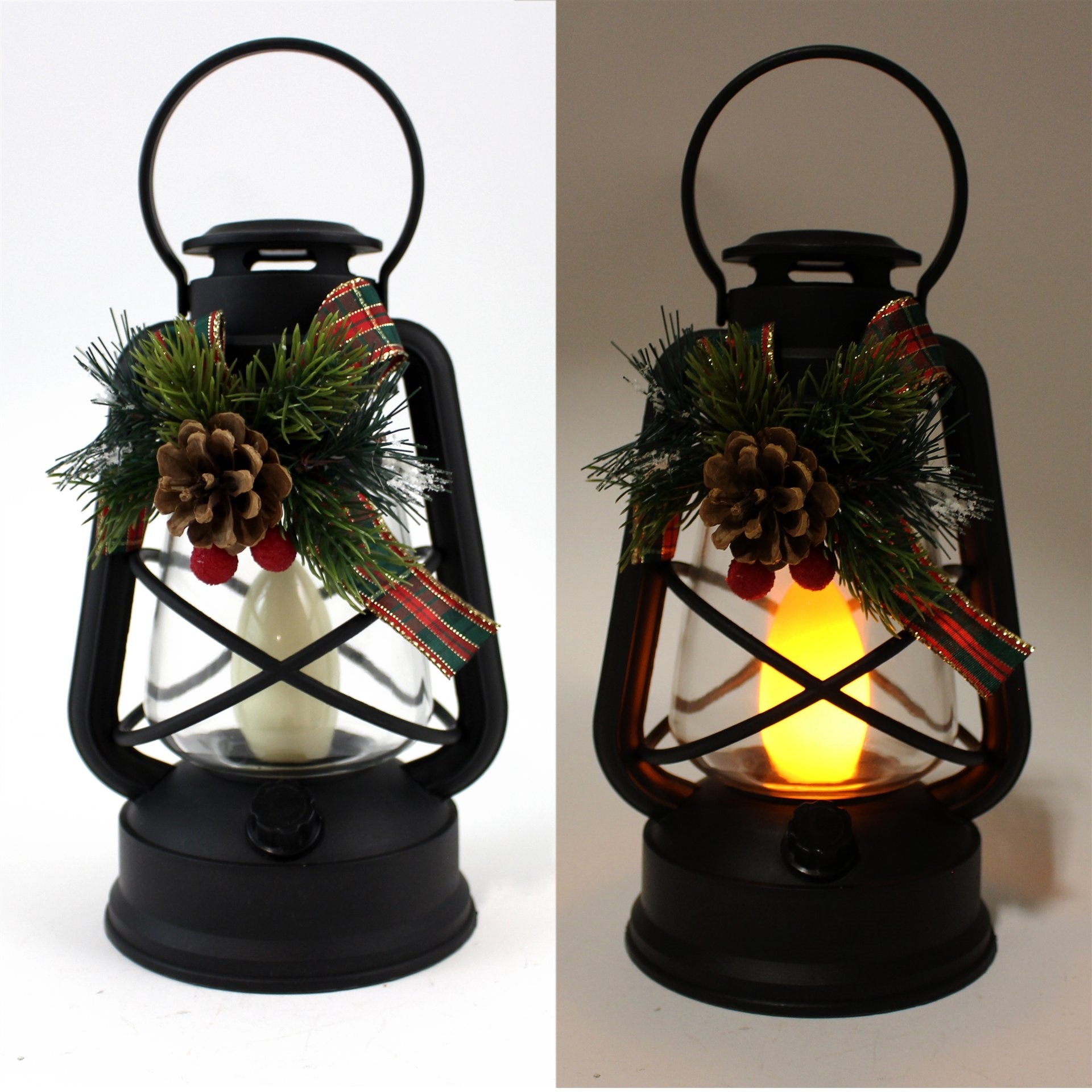 LED Lantern with Pine, Holly & Bow Detail