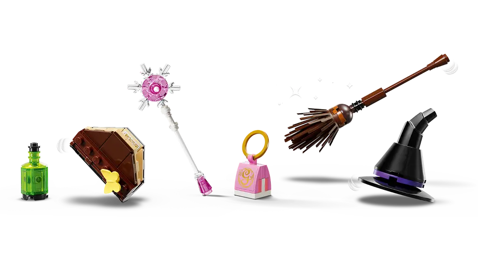 - Relive epic scenes – Hang with Glinda in the Emerald City bedroom and scour the hidden map, spin the turntable in the Kiamo Ko Castle playset and help Elphaba vanish over the LEGO® rainbow