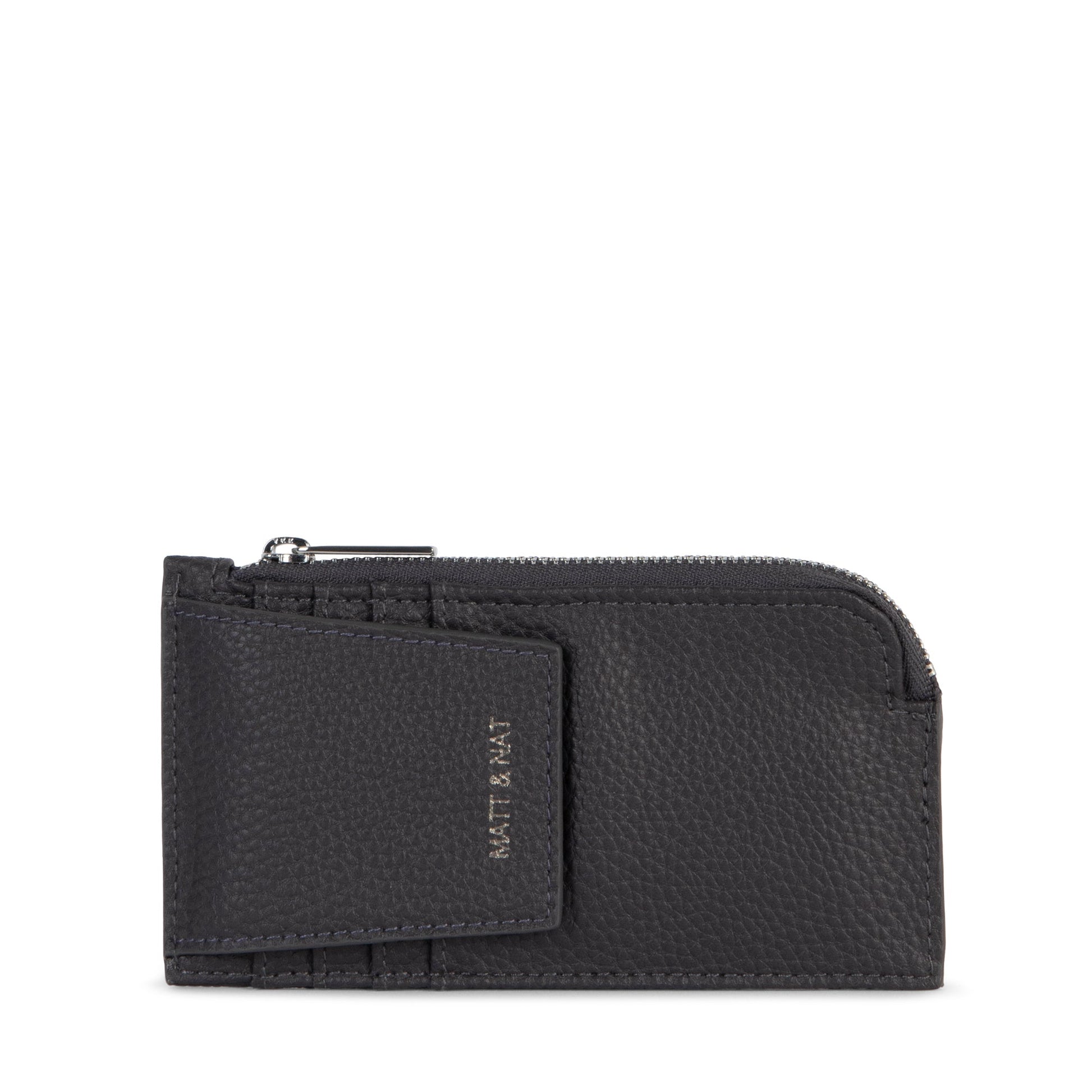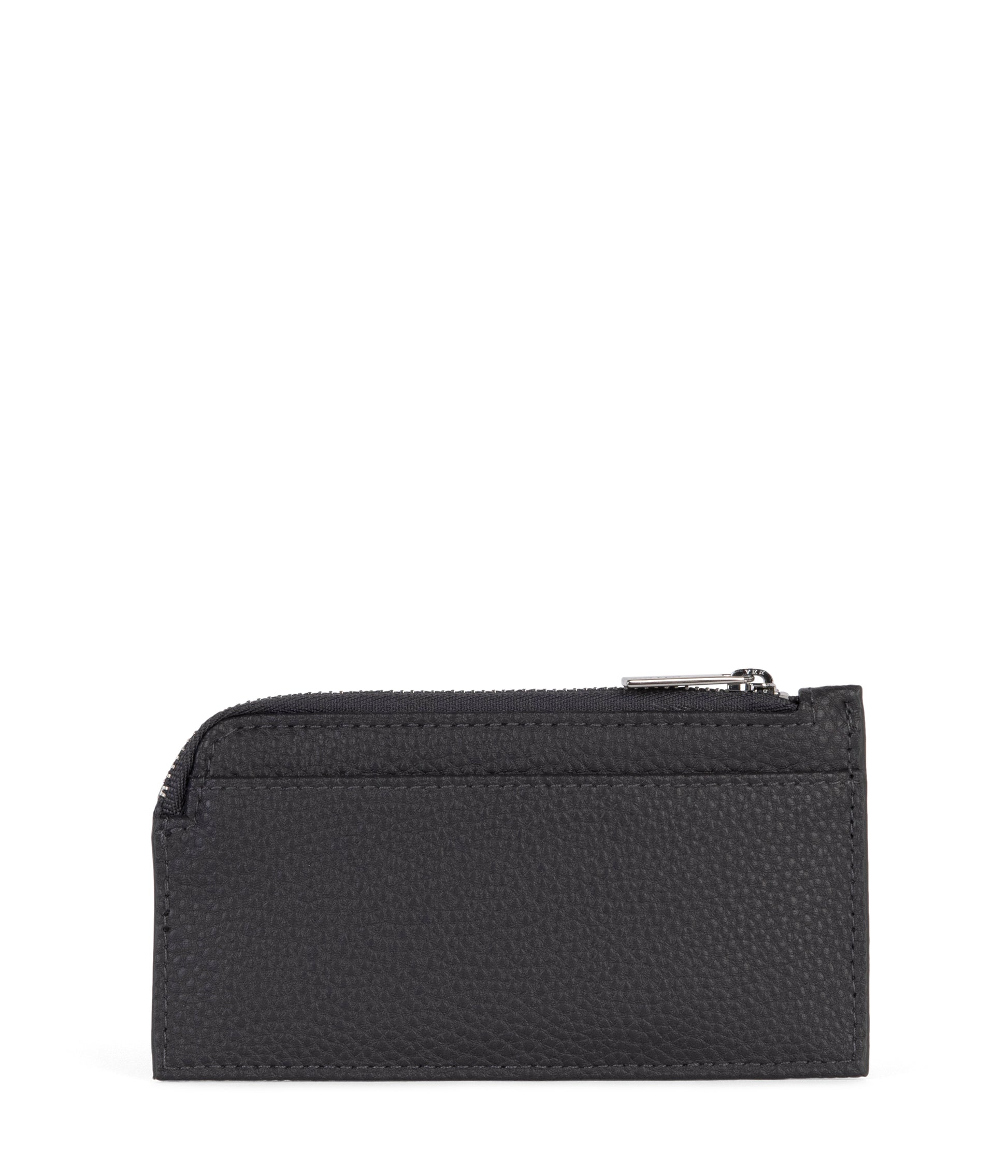 Cardholder with zip coin pocket, 4 card slots with a flap and snap closure, and a slip pocket at exterior back.