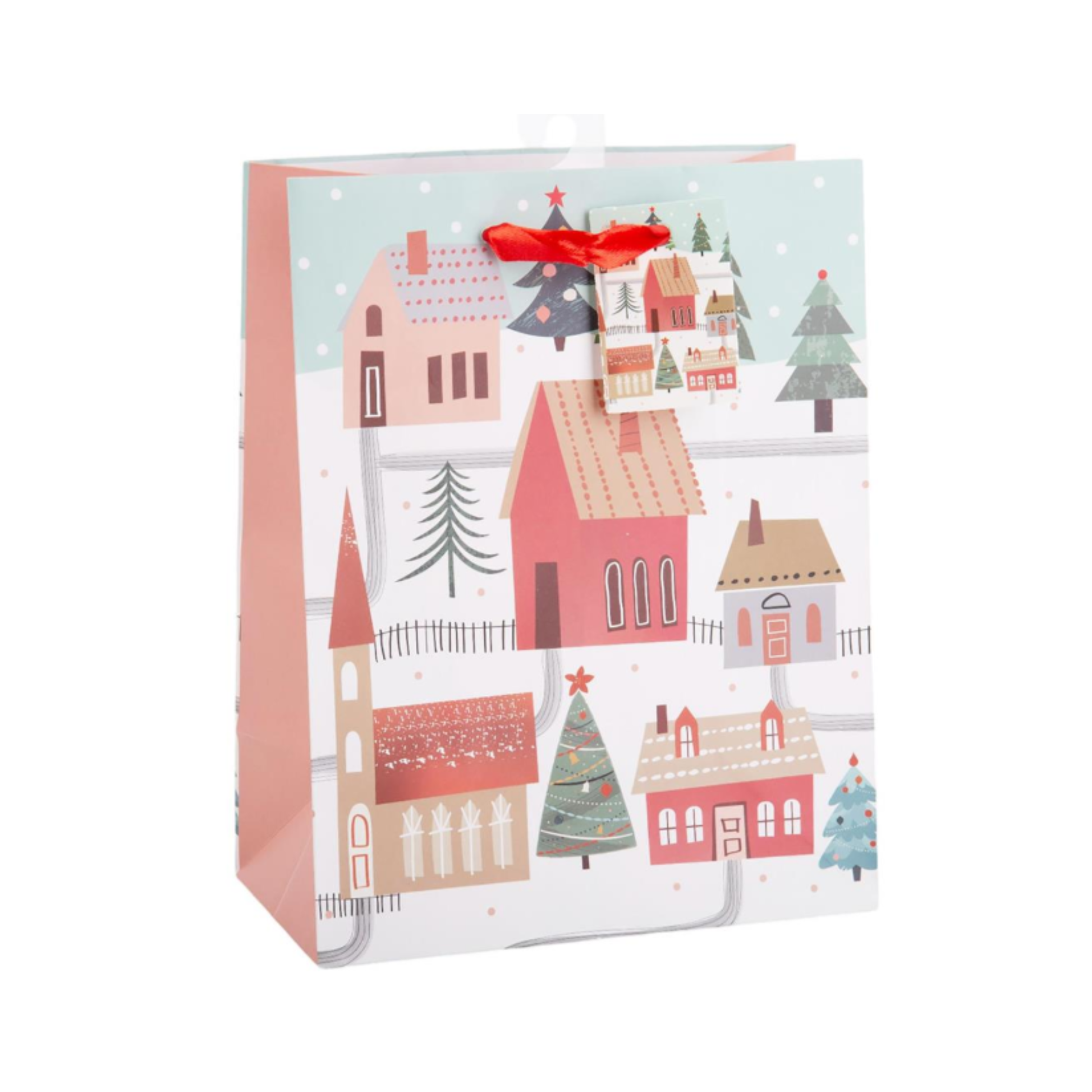 Winter Houses Gift Bag with Red Ribbon