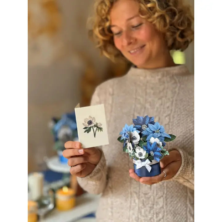 Mini Paper Bouquet - Blue Poinsettia - 6"