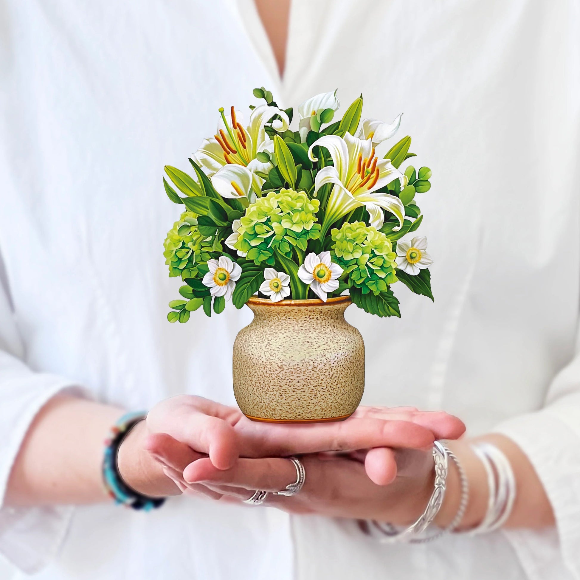 An elegant and mini bouquet for all of life’s big moments, the Mini Ivory Sage Bouquet features crisp, white lilies and calla lilies, alongside sweet anemones, green hydrangeas, and eucalyptus branches centered in a naturalistic stone and wood vase. This mini arrangement sends big sentiments of comfort, kindness, and love in a small silhouette. The perfect bedside pick-me-up and an extra-thoughtful way to say you’re in my heart and on my mind.