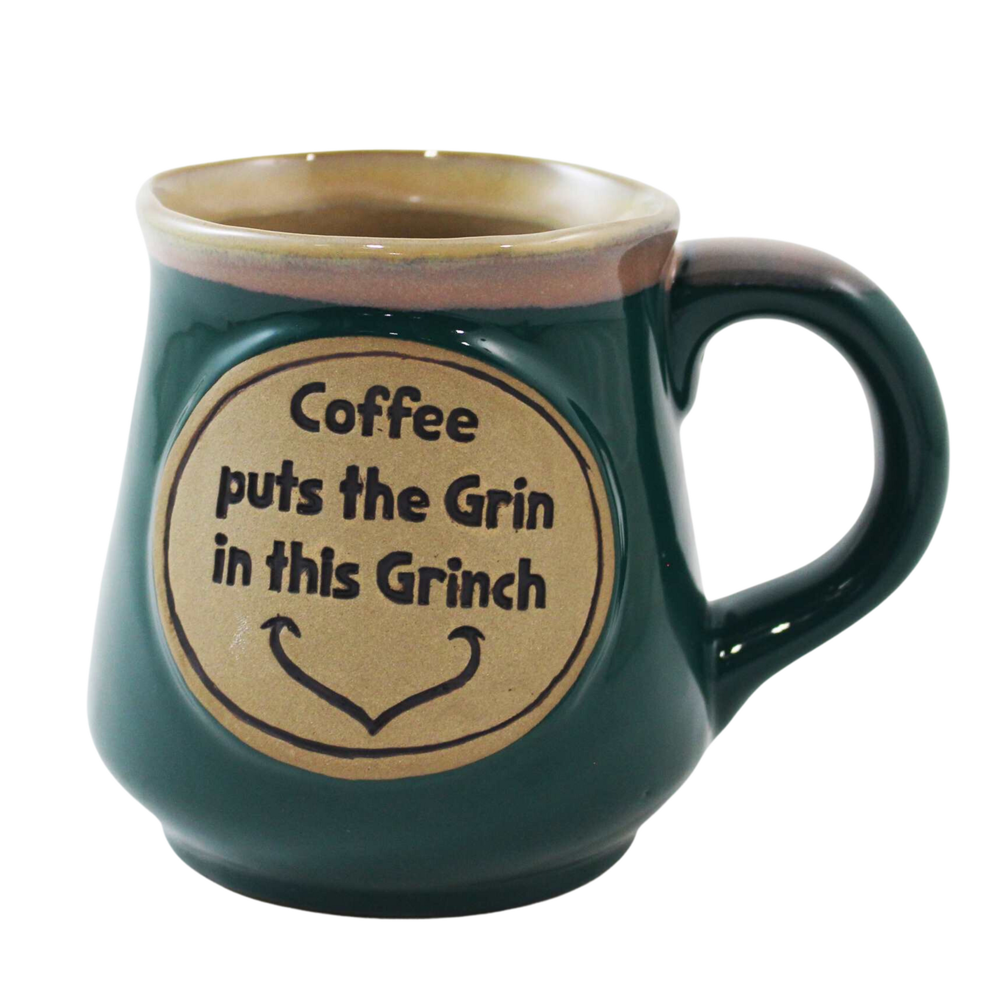 We are loving this hilarious holiday mug! Featuring the quote "Coffee puts the Grin in this Grinch".