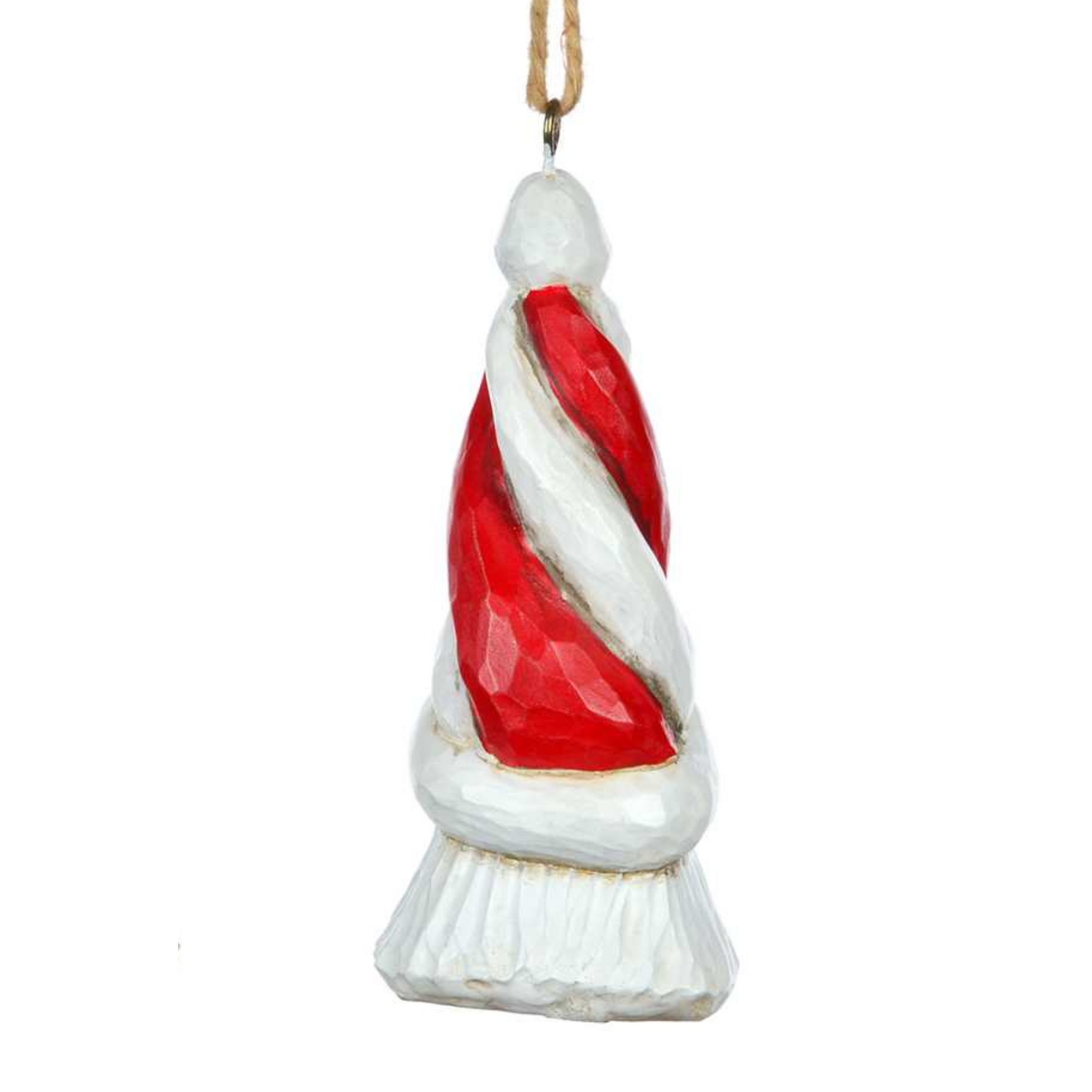 Do you have a sweet tooth? Santa’s hat mimics that delicious iconic Christmas treat – the candy cane. The spirals appear to twirl on the tree picking up reflections from Christmas lights.