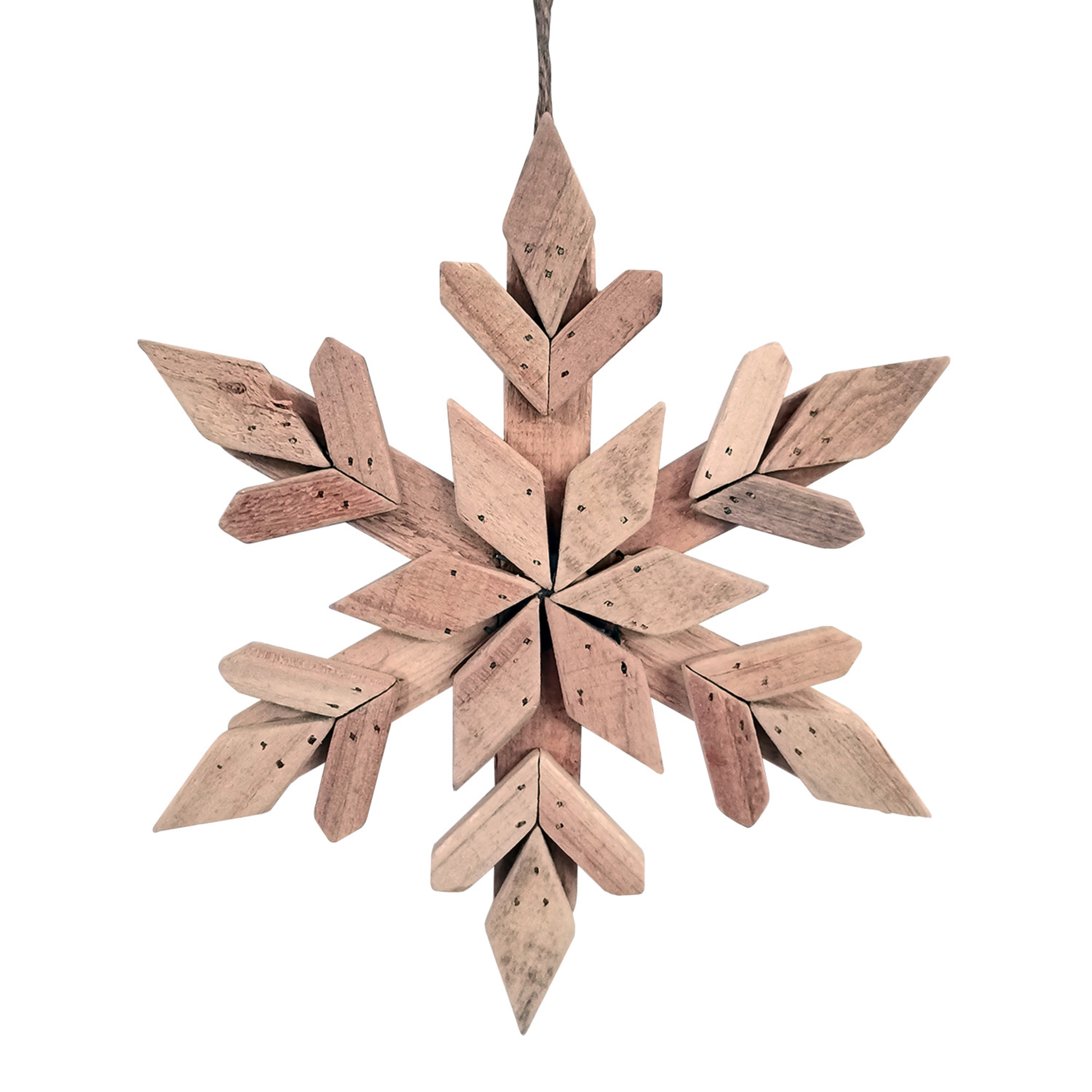 This 14" wooden snowflake ornament brings rustic charm and winter elegance to your holiday décor. Perfect for hanging on doors, walls, or oversized trees.
