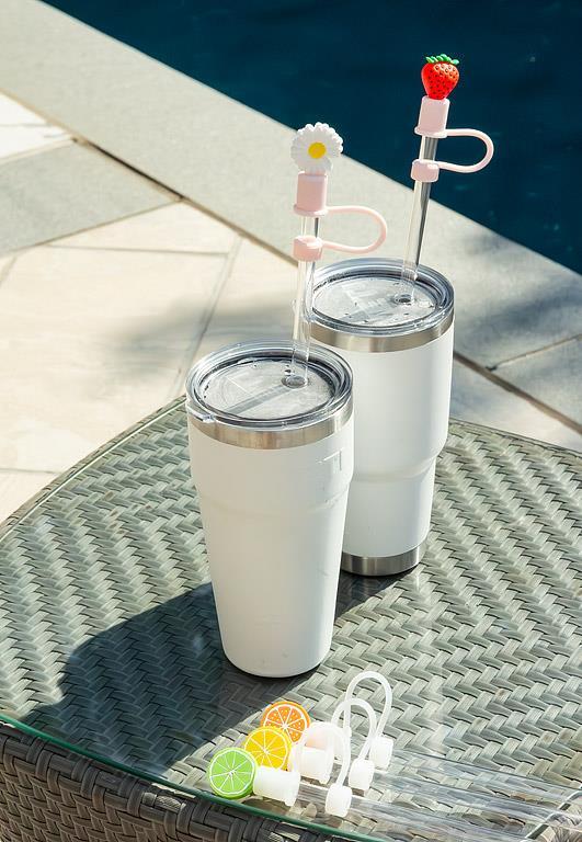 Introducing our Jumbo Straws with Daisy Caps in a set of 3. Crafted from silicone, the caps make excellent drink markers. Ideal for tall glasses or party drinks, they elevate any beverage experience with style and practicality, making them a fun addition to gatherings or everyday use.